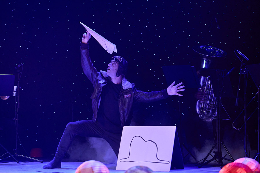 Teatro, danza, música en directo y mucha magia se entrelazan en esta producción de SingUs, concebida y dirigida por Alberto Frías, con dirección musical de Juan Manuel Alonso. Un viaje por mundos imaginarios en el que la música y la palabra guían al espectador hacia una verdad sencilla y luminosa: que lo esencial es invisible a los ojos.