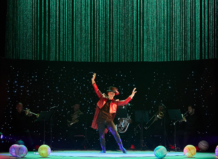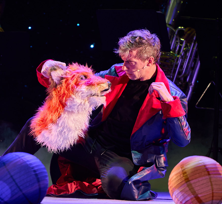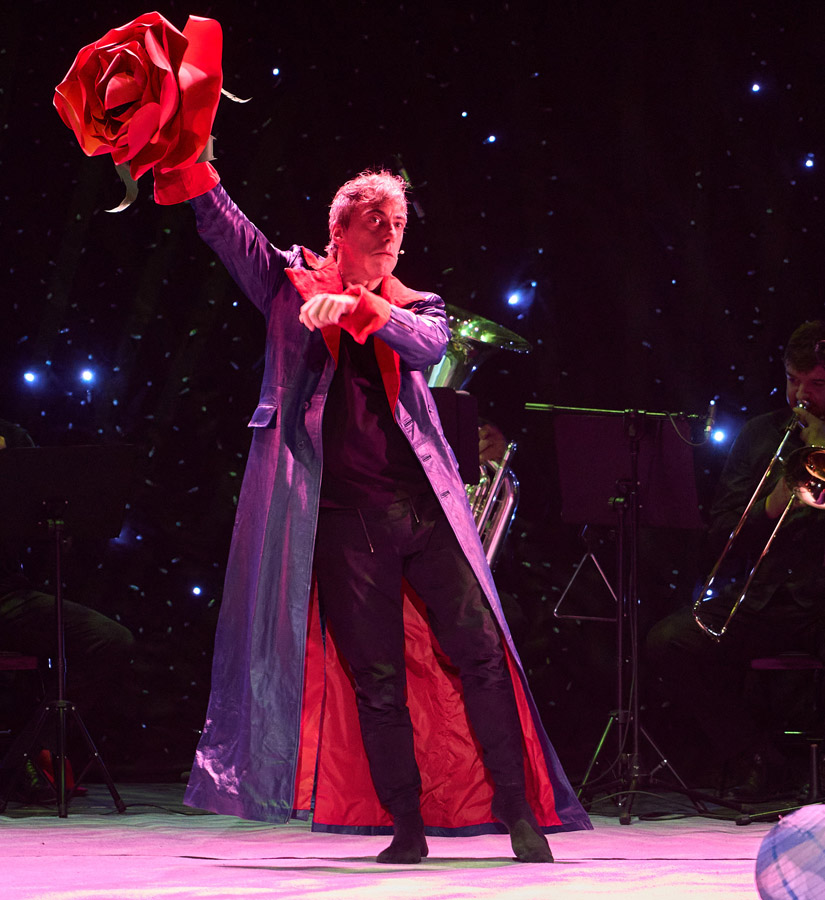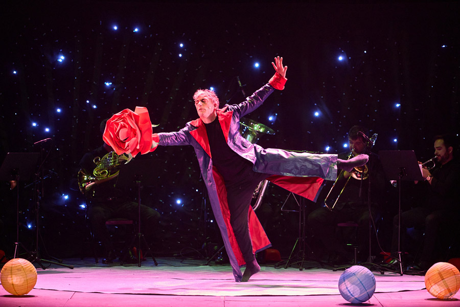 Un único actor, Fernando Trujillo, se transformará en todos los personajes, acompañado por un quinteto de viento metal que desplegará una partitura vibrante, en la que resuenan la majestuosidad de Los Planetas de Gustav Holst y la fuerza intemporal de uno de los libros más leídos del mundo.